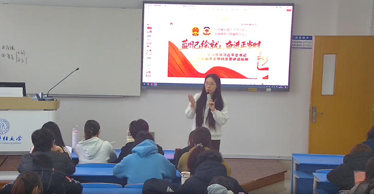 马克思主义学院思政课教师精准把握习近平总书记在全国两会期间重要讲话精神的核心要义,以思政课堂为主阵地,通过专题解读与深度研讨,将全国两会精神有机融入教学全过程。教师们坚持深入浅出、以理服人,鼓励学生主动思考、大胆表达,在观点交锋中培养思辨能力,在学思践悟中强化社会责任,不仅引导学生深刻领悟中国特色社会主义制度的优越性,更鼓励学生将国家战略与自身学习、职业规划紧密对接,将两会精神内化为奋进动力,在讲好中国故事、阐释中国道理、展现中国方案中切实提升思政课堂的实效性、针对性与吸引力,让思政课真正成为有深度、有温度、有力度的育人阵地。下一步,学院将继续守正创新,充分发挥思政课在落实立德树人根本任务中的关键作用,立足财经特色,为国家和区域发展输送更多有理想、敢担当、能吃苦、肯奋斗的新型财经人才。