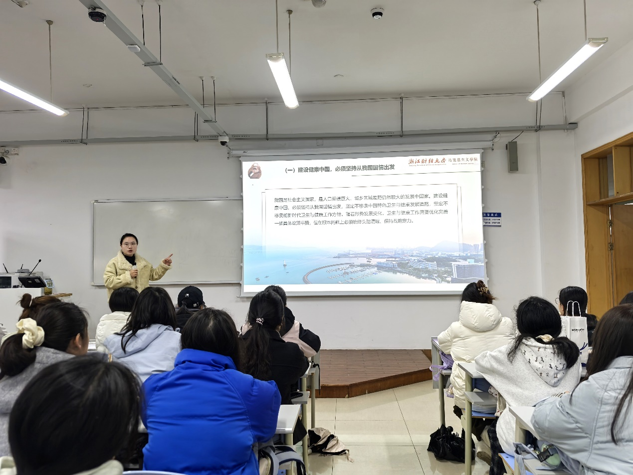 在《社会主义发展史》的课堂上,青年教师杨晓帆围绕推进健康中国建设的核心要义与实施路径进行了生动阐述。她从两会精神切入,围绕推进健康中国建设的核心要义与实施路径进行了生动阐述。建设健康中国必须立足我国基本国情,科学谋划、系统推进。这是一项涉及公共卫生、医疗服务、健康环境等多方面的长期系统工程,需要凝聚政府、社会与个人的共同力量。