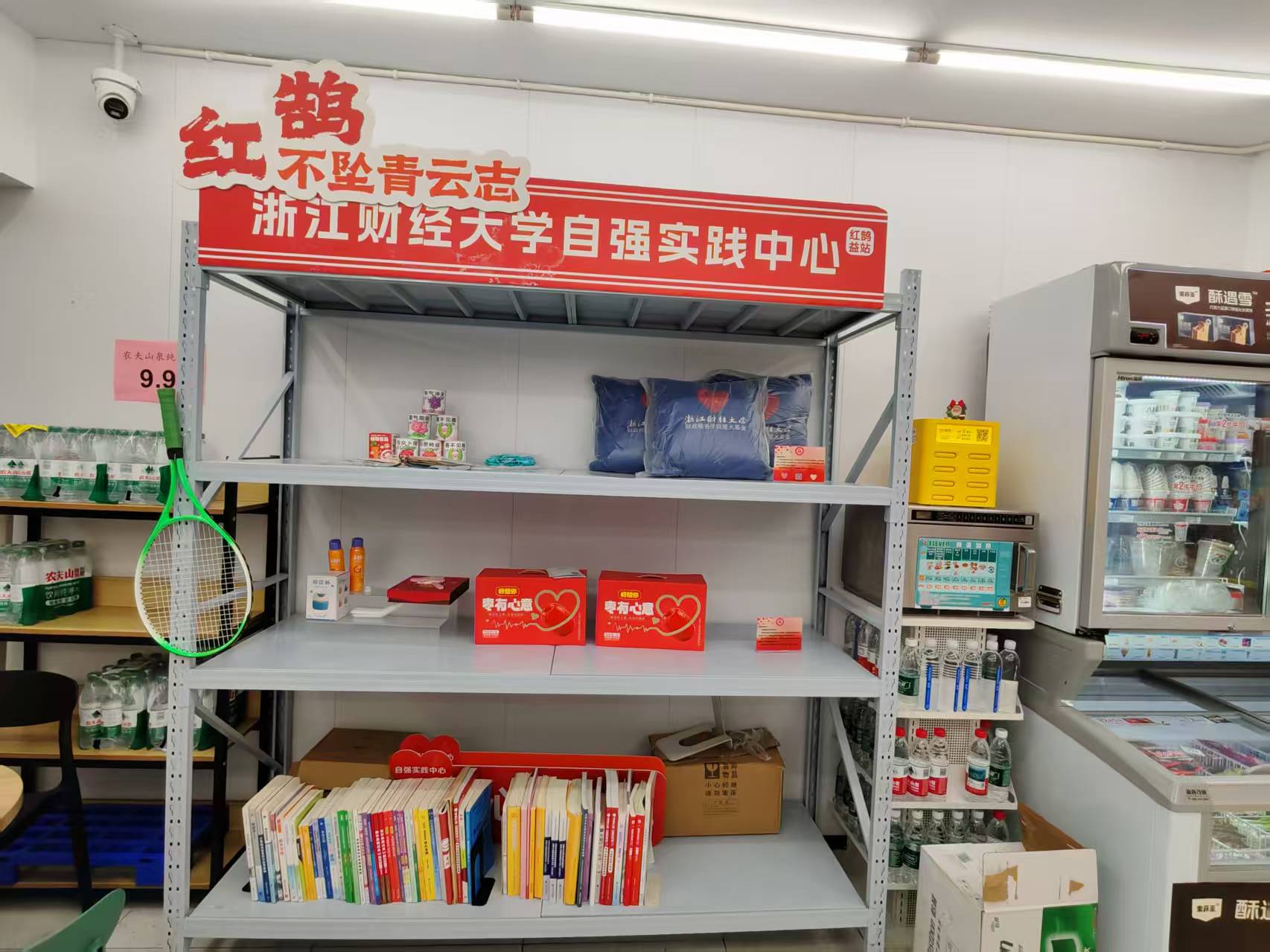 学院在生活园区设立“红鹄益站”,将经济帮扶与能力锻炼、园区服务深度融合,推出“自强货架”暖心项目,采用免费自取+自主寄售模式,接收师生捐赠闲置物品,助力物资循环与自立自强教育。运行以来,累计接收爱心物品近 1000 件,服务师生 830 余人次,让互助关爱在寝室园区真实流淌,打造园区内具有人文关怀的实体场景。