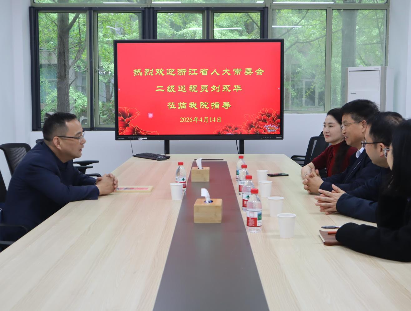 本网讯 4月14日,浙江省人大常委会法制工作委员会二级巡视员刘永华应邀做客“文华讲堂”。党委委员、副校长董进才会见了刘永华,文华创新学院领导班子成员陪同。