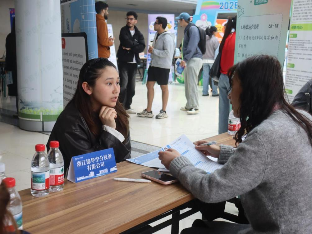 本网讯 近日,由浙江省高校外国来华留学生创新创业联盟指导,我校国际学院、浙江省境外投资企业协会联合主办,浙企出海综合服务港协办的“智联世界——2026年外国留学生就业实习推介会”在学校下沙校区举办。