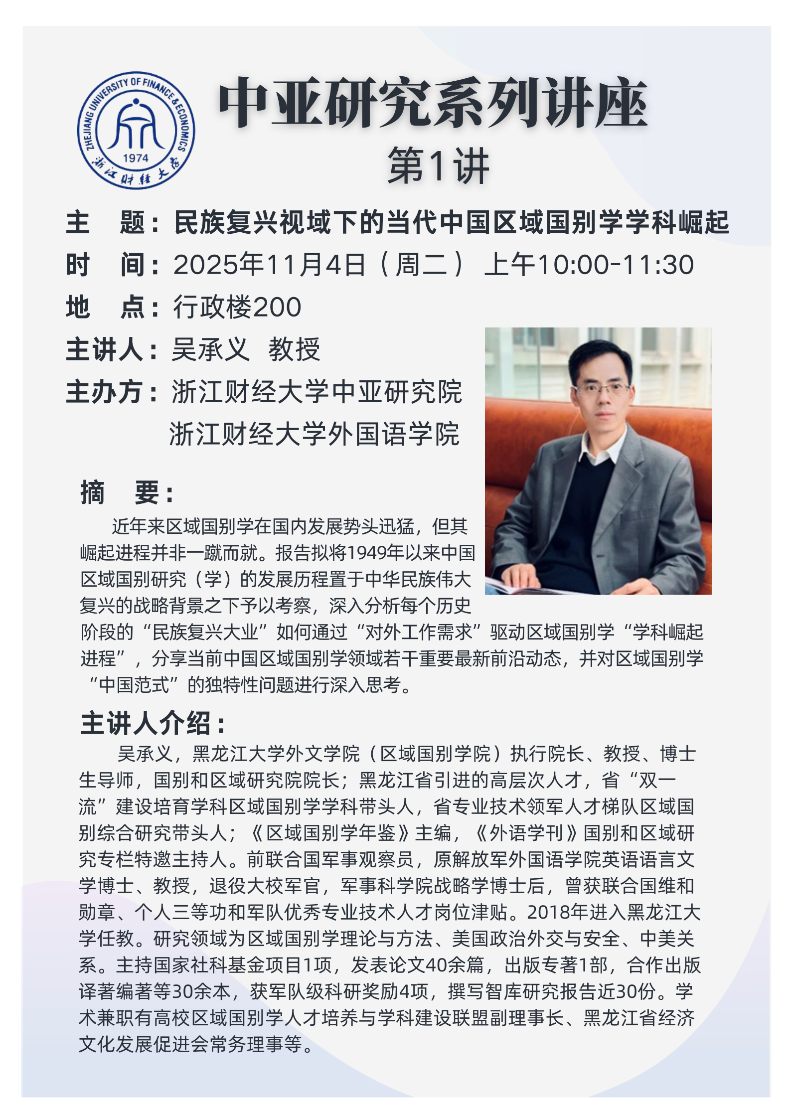 【“中亚研究系列讲座”第一讲】吴承义:民族复兴视域下的当代中国区域国别学学科崛起