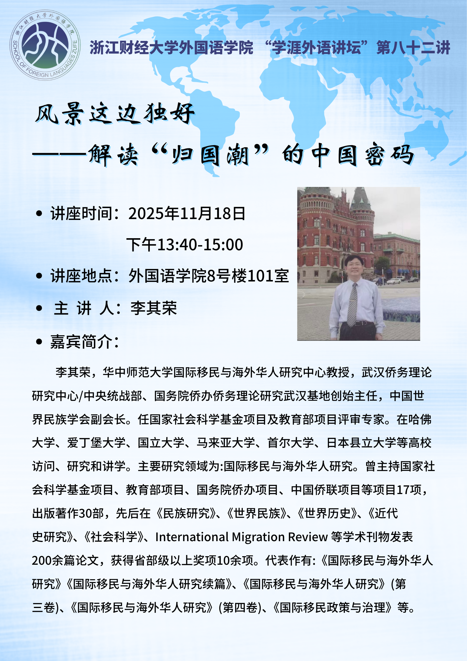 【“学涯外语讲坛”第八十二讲】李其荣:风景这边独好一一解读“归国潮”的中国密码