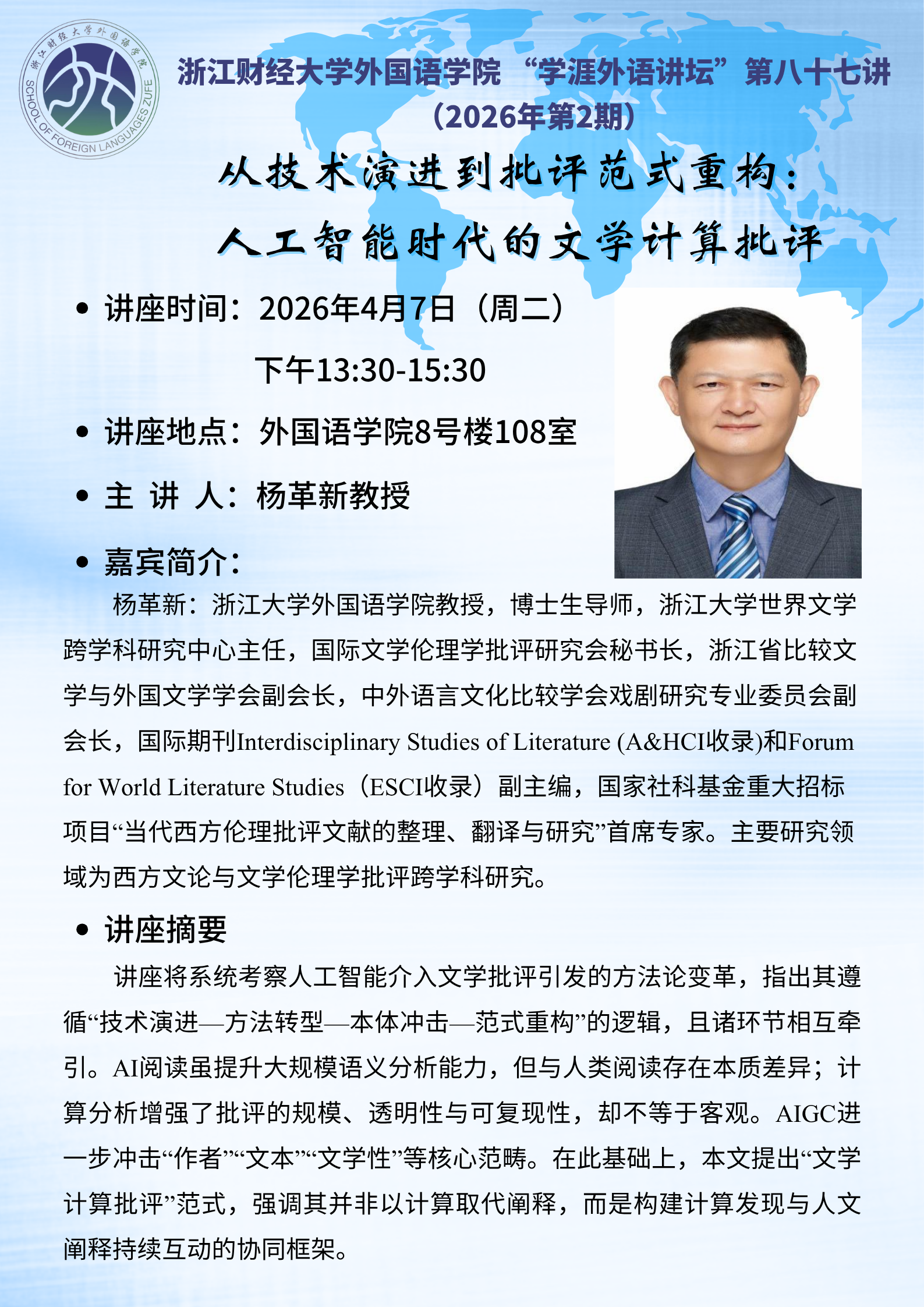 【学涯外语讲坛】第八十七讲 杨革新:从技术演进到批评范式重构:人工智能时代的文学计算批评