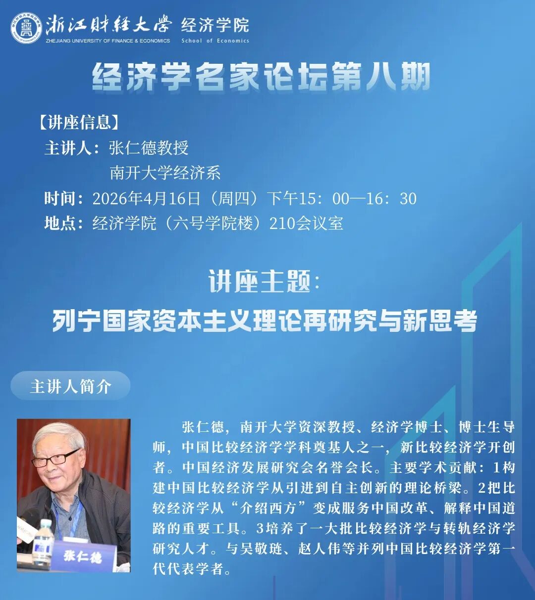【经济学院系列学术活动】经济学名家论坛第八期:列宁国家资本主义理论再研究与新思考