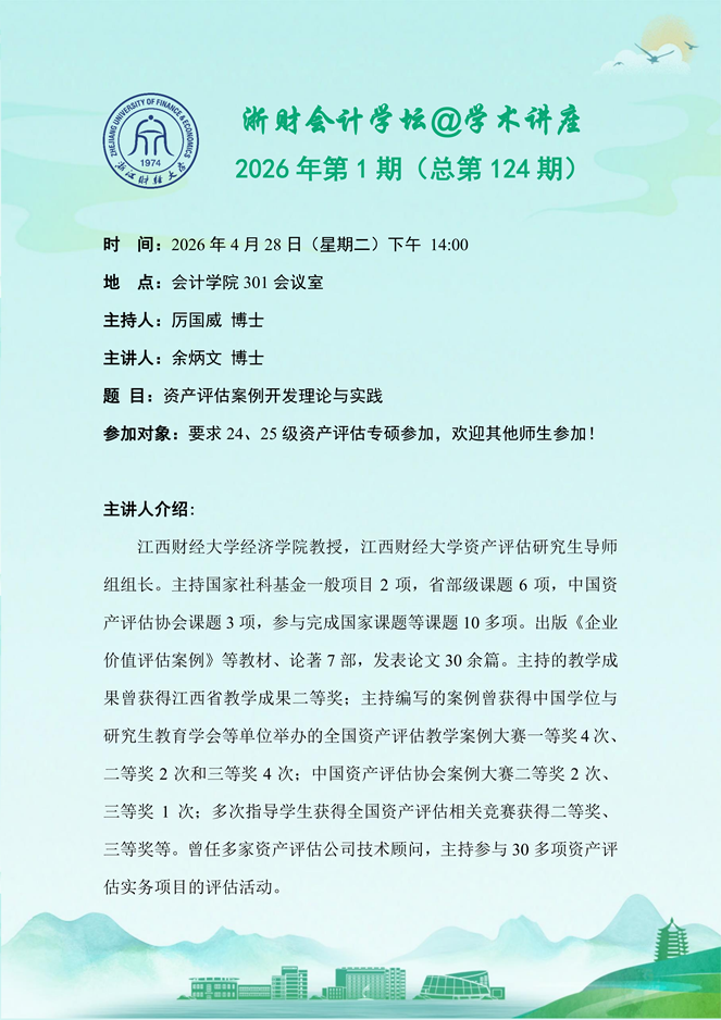 【会计学院系列学术活动】浙财会计学坛@学术讲座2026年第1期(总第124期)——余炳文博士